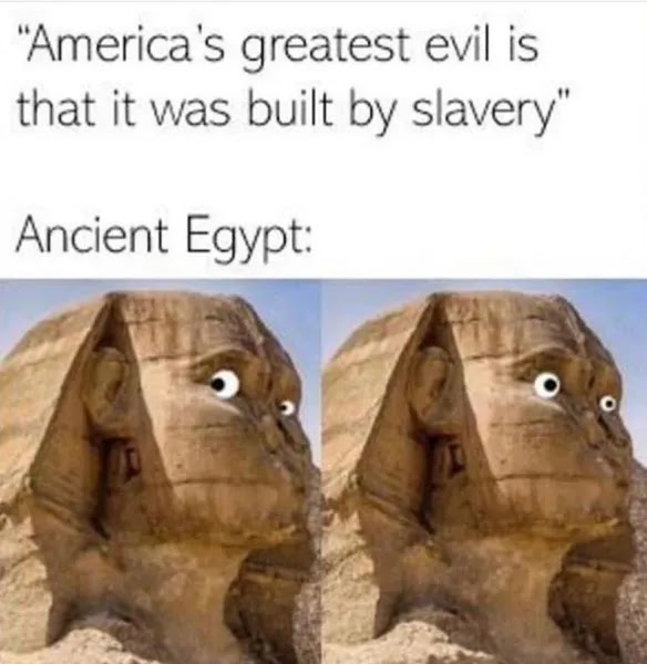 I wouldn't mind leftists going on so much about slavery in America if I had any reason to think they understood the evil exists today in other parts of the world and was common in history around the world:
